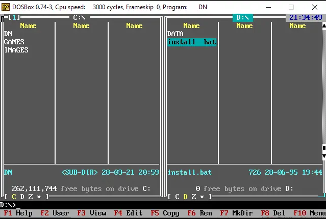 Совсем не трудно найти и бесплатно скачать DOSBox для Windows. После загрузки файла, следует запустить инсталлятор. Он устанавливает утилиту, а также создаёт на рабочем столе иконку и добавляет программу в выпадающее меню кнопки «Пуск». Если запустить сразу, то будет доступна только командная строка. Чтобы более комфортно использовать эмулятор, надо подключить графическую оболочку.